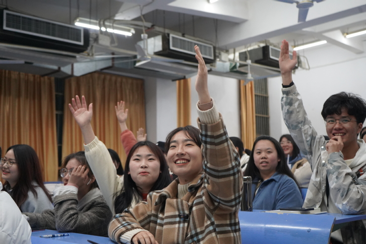 竞赛第一环节采用选择题的形式,先是组织人员向各个参赛组分发白纸,随后再公布题目,同学们看完题目后立即低头在纸上作答,现场的气氛随着同学们的投入也严肃了起来。例如“四书五经”中的“四书”是指什么的问题,有的同学看完低头沉思,也有同学立即自信地写下答案。随着时间的流逝,第一环节的二十道题目都已经展示,同学们的队伍都作出了回答。最后由组织人员收回答题纸,并得出各个组的分数,留下了分数优异的二十支队伍。随后就是第二环节,这个环节采用口头抢答的方式。经过一个环节的删选,留下的同学都是具备着丰富的中华传统文化知识,而抢答的方式更是考察同学们对传统文化的了解程度。但是各组的选手们都充满自信,题目稍一公布就立即举手抢答,被抽中的同学也都能准确地得出答案。同学们踊跃抢答,展示他们了对中华传统文化的充分了解。最后的第三环节是口头抢答的附加题,竞赛也进入了白热化的阶段。即使附加题回答错误就会扣除相应的分数,但是同学们还是选择抓住最后的机会,积极的回答。各种传统习俗诗词并没有难倒同学们,反而激发了同学们的抢答热情,选手的抢答速度之快甚至让组织人员难以判断。竞赛也在最后的激烈竞争中圆满结束了。