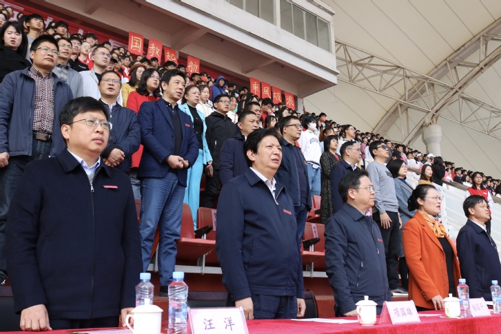 追逐着运动健儿的身影,拼搏的精神为大家奉献一场又一场精彩的比赛,两天半的赛程在桂香四溢的江西师范大学吹响号角,在激烈火热的竞争中愈演愈烈,最终在胜利的光辉下拉下帷幕。10月24日上午10时30分,主持人宣布闭幕式正式开始,校领导校长梅国平,副校长谢济明、汪洋、项国雄、姚弋霞、刘俊出席闭幕式现场。