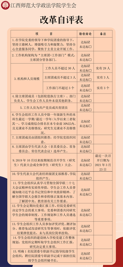 江西师范大学政法学院学生会推进改革情况公示