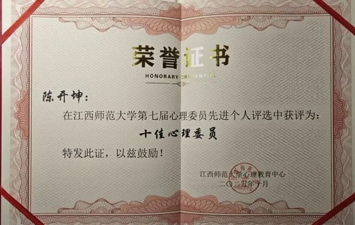 向下扎根,以专业夯实善意底气。他秉持“善意必须与科学同行”的理念,先后取得MOOC心理委员与心理疗法双认证,多次获评优秀心理委员,持续深耕心理知识,让每一次陪伴都有专业支撑。