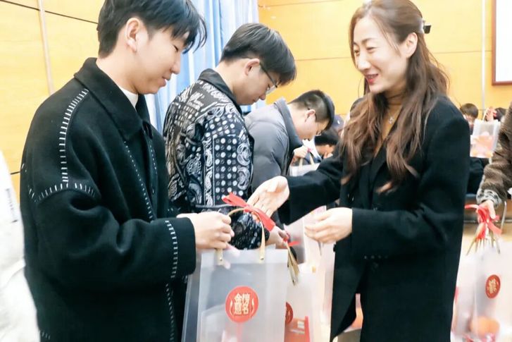 最温馨的环节莫过于“暖心礼”的发放。老师们将精心准备的慰问礼包送到每位学子手中。礼包内,新鲜饱满的橙子寓意 “‘橙’功上岸、圆梦初心”,香甜的旺仔牛奶祝福 “好运旺旺、心想事成”,而实用文具则助力 “笔下生辉、考场逐光”。这份满载心意与期许的礼物,不仅为紧张的备考生活注入一抹甜暖,更凝聚了全院师生同心共进、携手逐梦的深厚情谊。