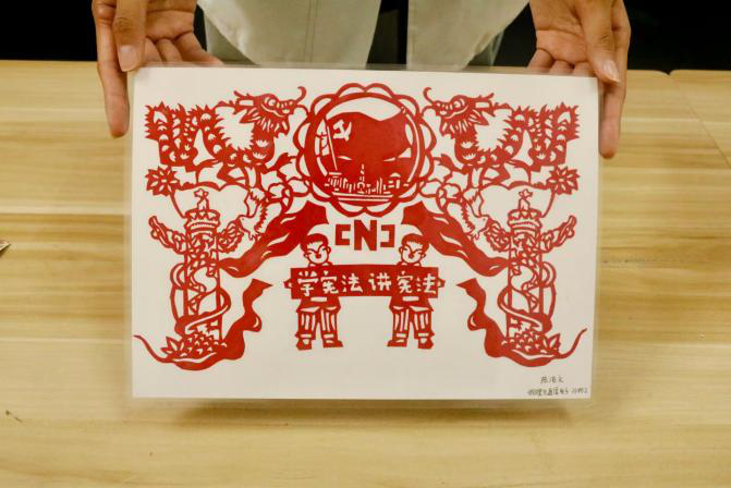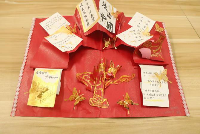 为让法治精神跳出书本、以更鲜活的形态浸润校园,学校举办法治教育精品资源征集活动,催生了一批鲜活的法治传播载体。3分钟的法治动漫与微视频作品涵盖校园安全、反诈普法等主题;书画、剪纸、刺绣等手工作品将宪法理念融入艺术创作,实现法治精神可视化。各班级也通过观影研讨、宪法合影、法条共读等多元形式,让法治教育自然融入日常学习与生活。